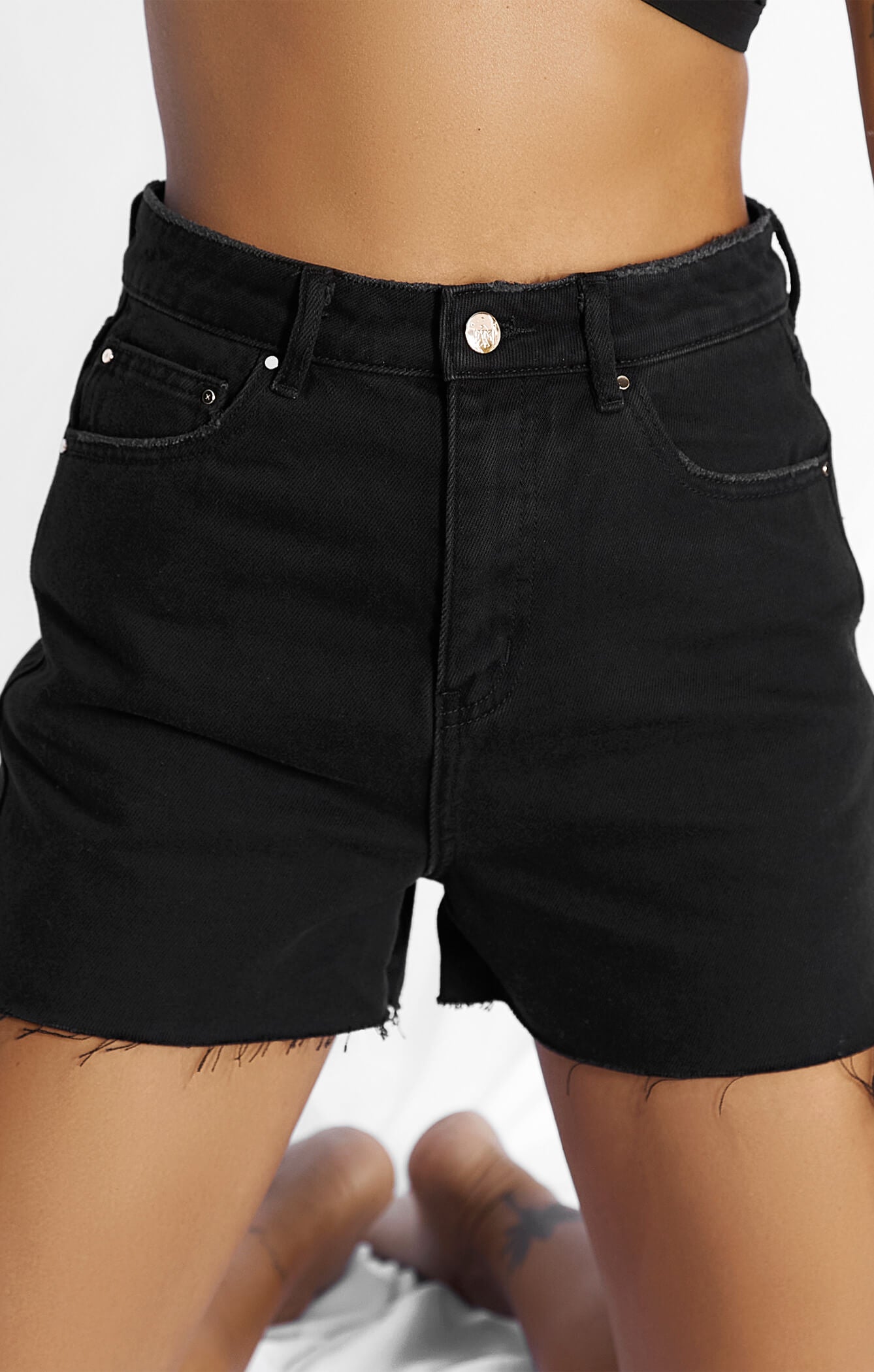 THE HIGH RISE DENIM CUT-OFF SHORT - WASHED BLACK