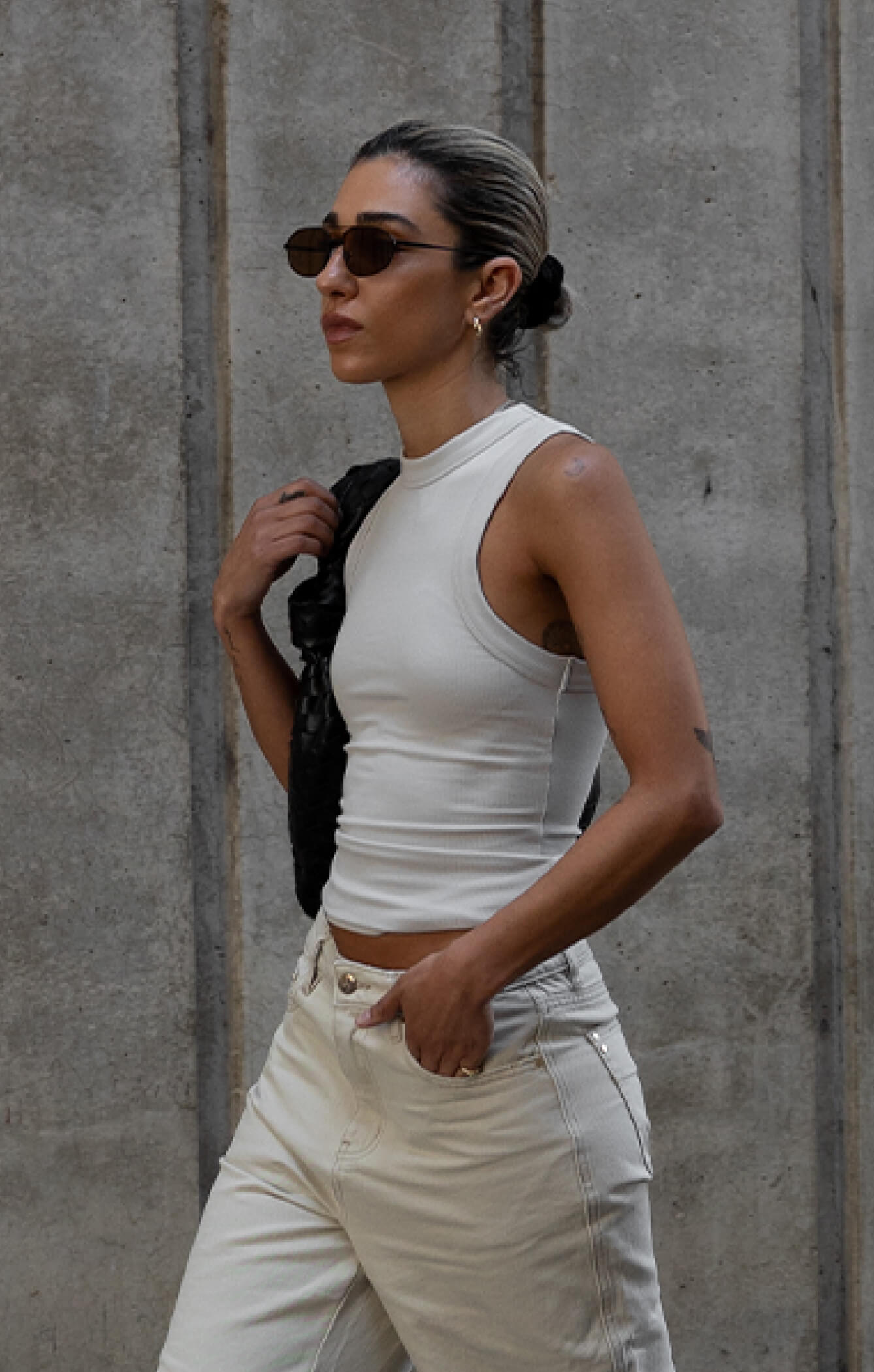 THE LUXE RIB HIGH NECK TANK - STONEDuties & taxes included. Same-day dispatch Mon-Fri, before 2pm AEDT