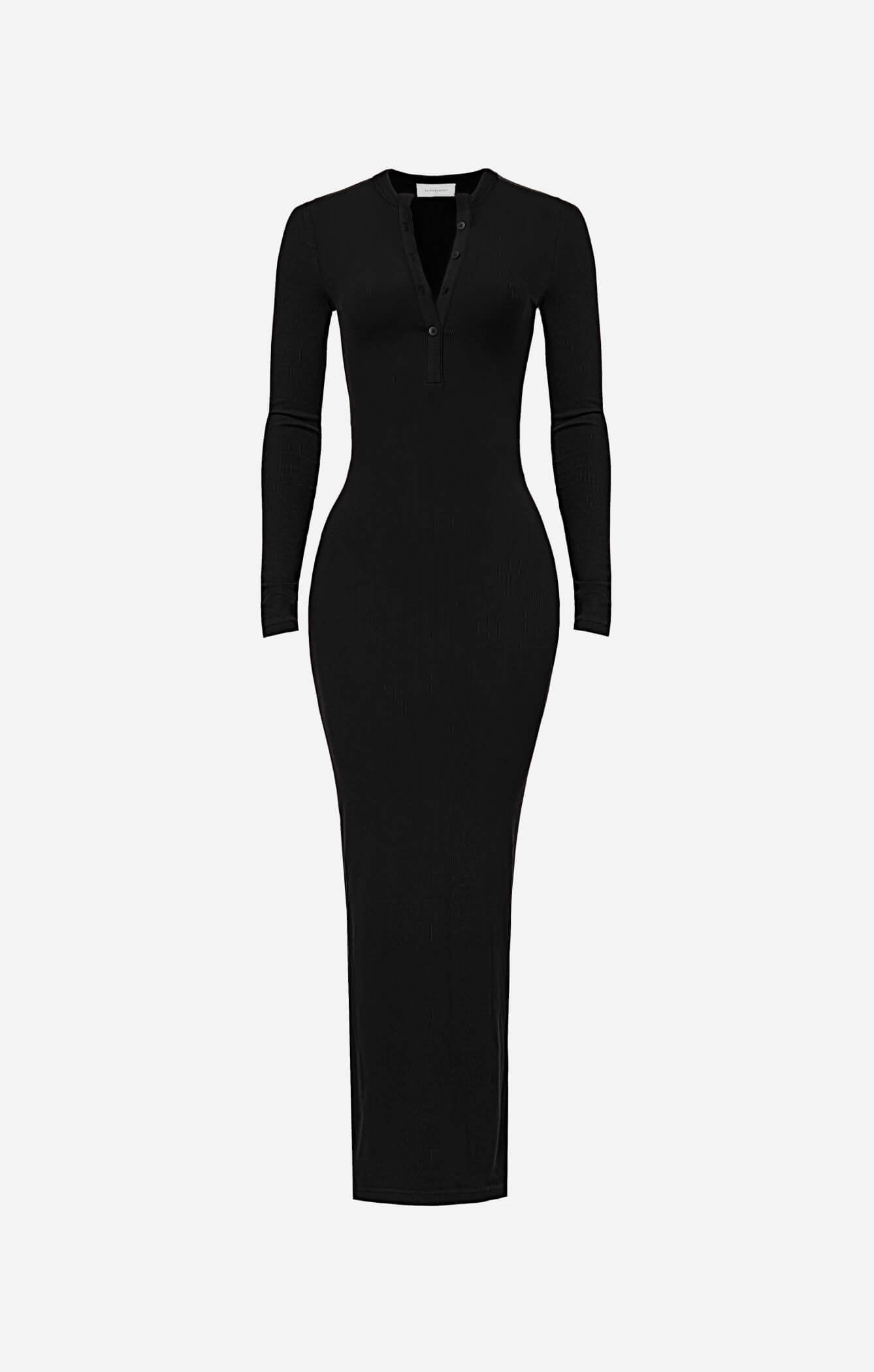 THE LUXE RIB L/S HENLEY MAXI - BLACK